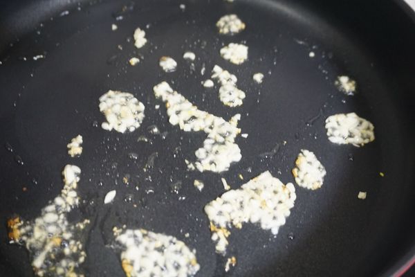 5、坐热油锅,少许油加蒜末爆香。