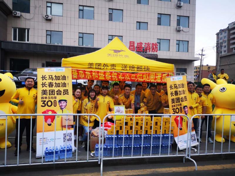 5月26日,2018长春国际马拉松赛鸣枪开跑,三万余名参赛选手冒雨奔跑在长春市的赛道上。随着马拉松队伍的行进,长春成为欢乐的海洋。除了赛道旁传来市民的阵阵助威声,赛事保障方面,当地美团外卖的志愿者骑手也为骑手以及加油市民们早早搭建好了休息用的帐篷,为累了的选手和呐喊的市民们提供水饮,鼓气加油。