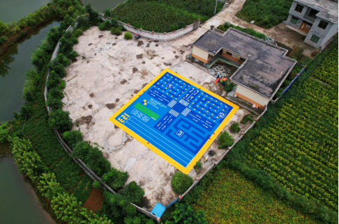 ▲全国第843座美团乡村儿童操场,贵州省铜仁市松桃苗族自治县盘石镇过洲村山村幼儿园。(摄影:李熠晨)