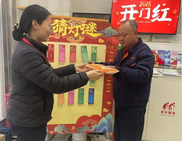 小纪支行“猜灯谜 闹元宵 赢好礼”活动别具特色,办理业务的客户纷纷驻足灯谜区,在趣味互动中收获节日礼品。此外,该行特别为老年群体开设“防范电信诈骗”微课堂,通过真实案例解析、发放反诈手册及普惠金融指南,提升老年客户风险防范意识。“银行不仅送汤圆,还教我们防诈骗,太贴心了!”一位老人连连称赞。
