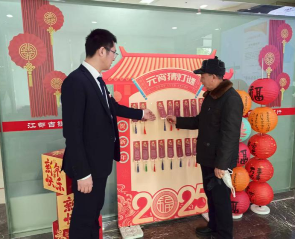 正月十五元宵至,万家灯火庆团圆。为弘扬中华优秀传统文化,营造喜庆祥和的节日氛围,2月12日,江都吉银村镇银行以“巳巳如意 欢乐闹元宵”为主题,在全行各营业网点开展元宵节厅堂微沙龙活动,通过趣味互动、金融知识普及和暖心服务,为市民送上节日祝福与关怀。