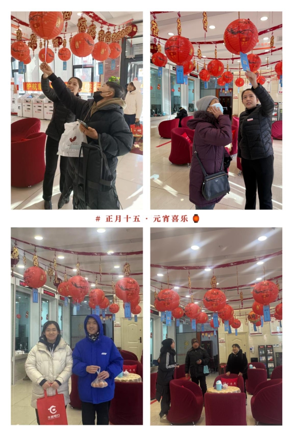 近日,华夏银行长春幸福街支行开展了热热闹闹的元宵节猜灯谜活动,支行精心布置了内部环境,营造浓浓的节日氛围,提前邀约社区居民和周边商户在元宵节当天来到支行参与猜灯谜积分换好礼活动。